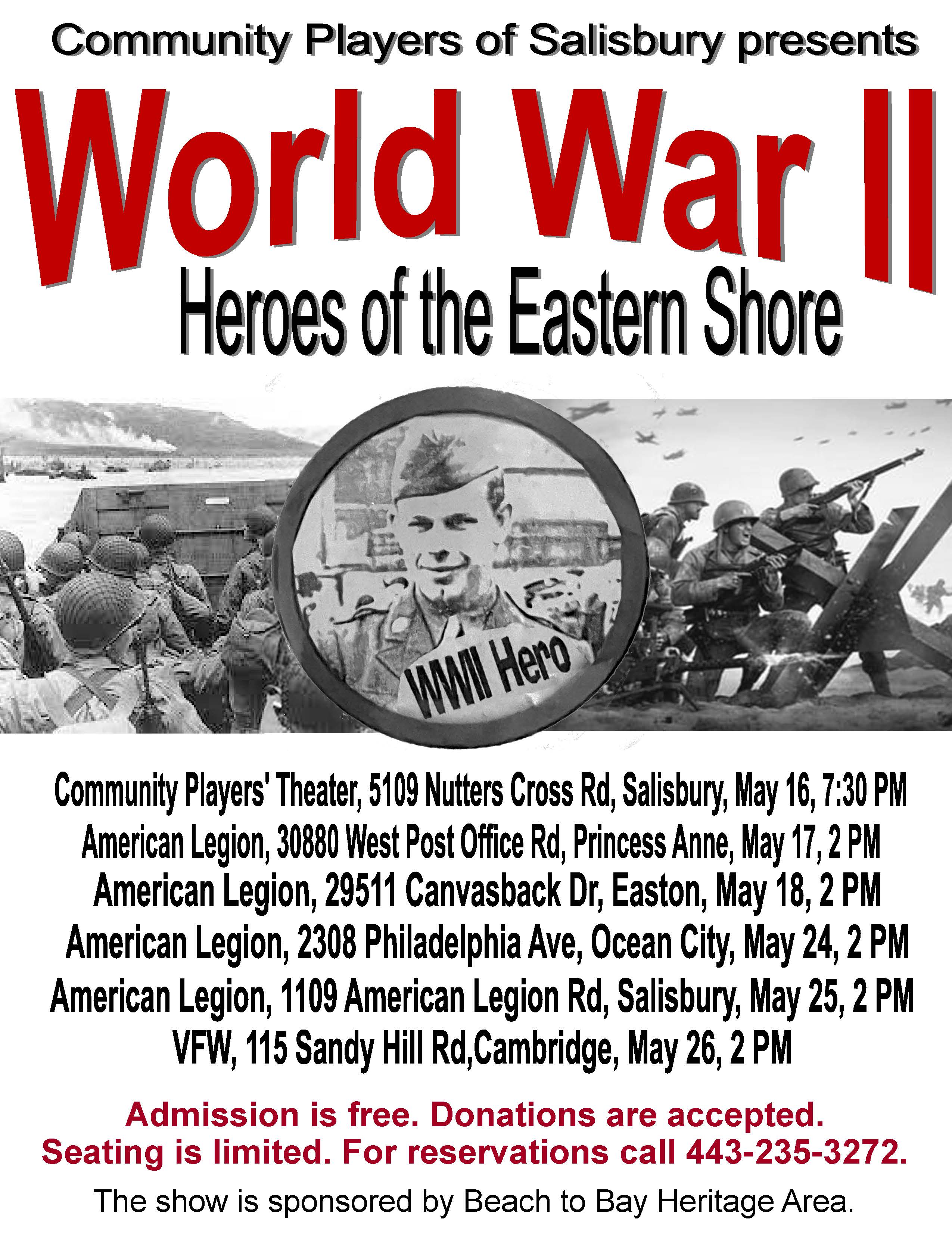 | American Legion at 30880 West Post Office Rd, in Princess Anne, Saturday May 17, at 2:00 p.m. |